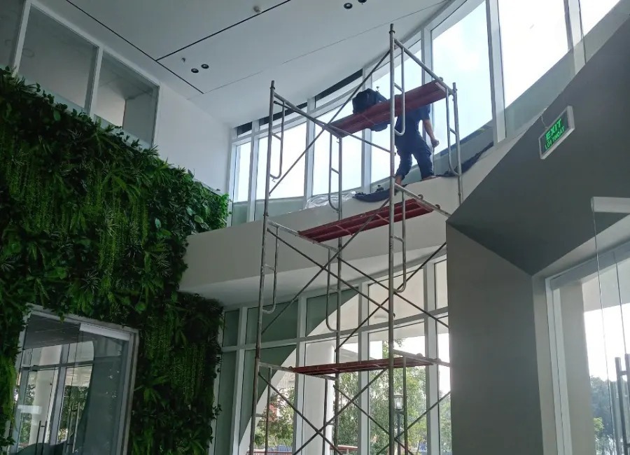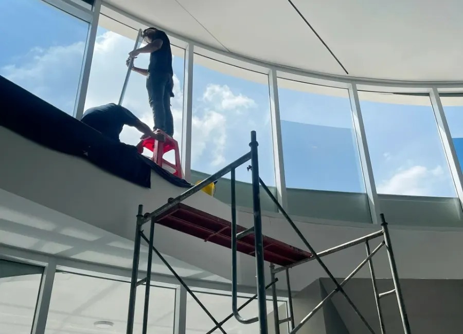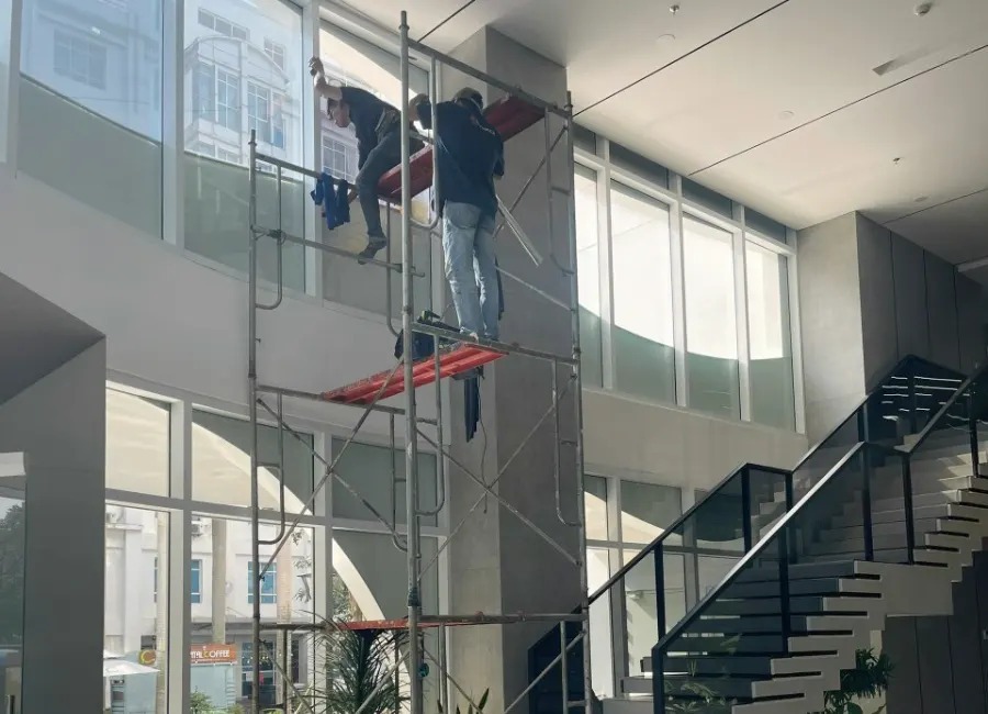 Chúng tôi chuẩn bị đầy đủ máy móc để thi công cả những vị trí kính khó